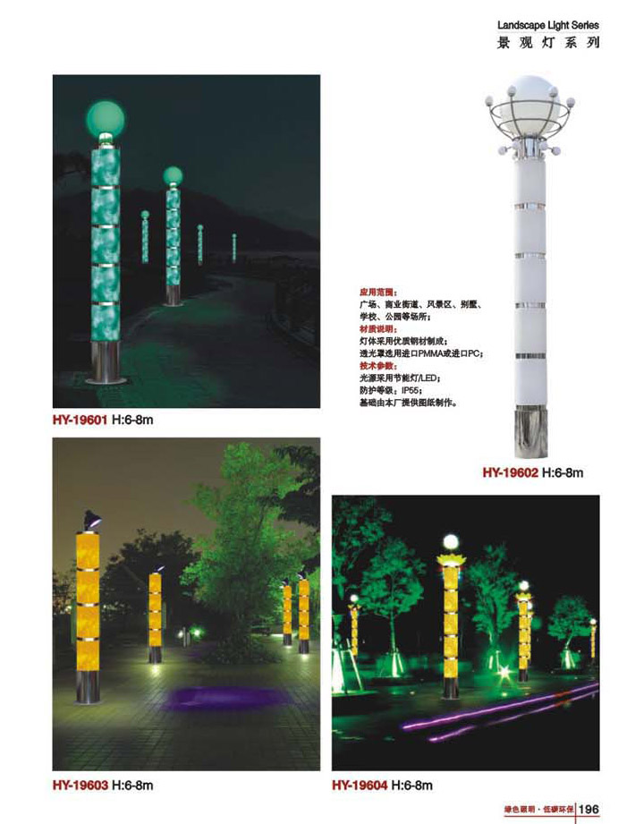 用途:景观灯适用市政工程、园林亮化工程和公园、开发区、别墅区、广场等户外路灯照明工程