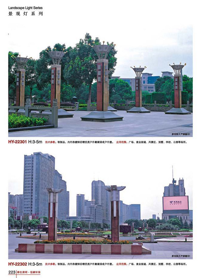 用途:景观灯适用市政工程、园林亮化工程和公园、开发区、别墅区、广场等户外路灯照明工程