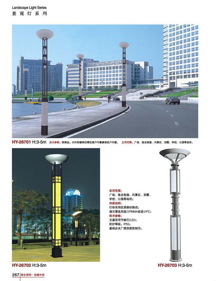 用途:景观灯适用市政工程、园林亮化工程和公园、开发区、别墅区、广场等户外路灯照明工程