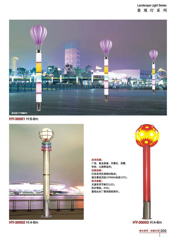 用途:景观灯适用市政工程、园林亮化工程和公园、开发区、别墅区、广场等户外路灯照明工程