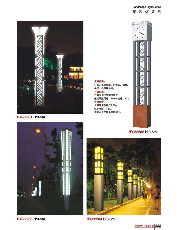 用途:景观灯适用市政工程、园林亮化工程和公园、开发区、别墅区、广场等户外路灯照明工程