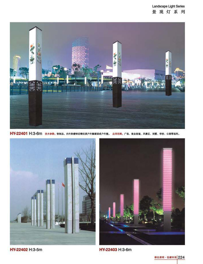 用途:景观灯适用市政工程、园林亮化工程和公园、开发区、别墅区、广场等户外路灯照明工程