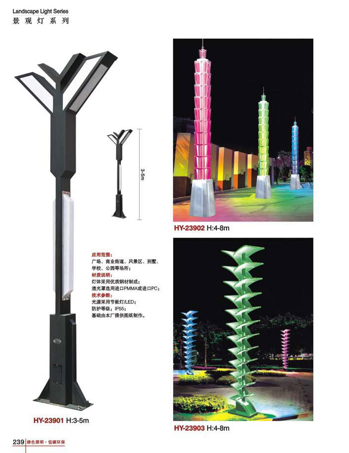 用途:景观灯适用市政工程、园林亮化工程和公园、开发区、别墅区、广场等户外路灯照明工程
