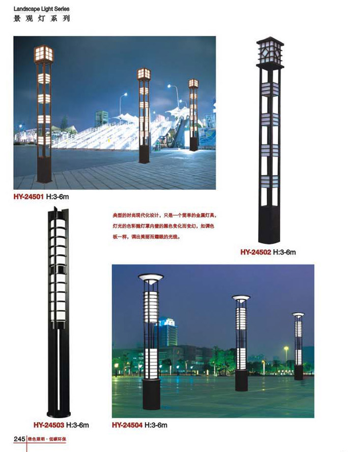 用途:景观灯适用市政工程、园林亮化工程和公园、开发区、别墅区、广场等户外路灯照明工程