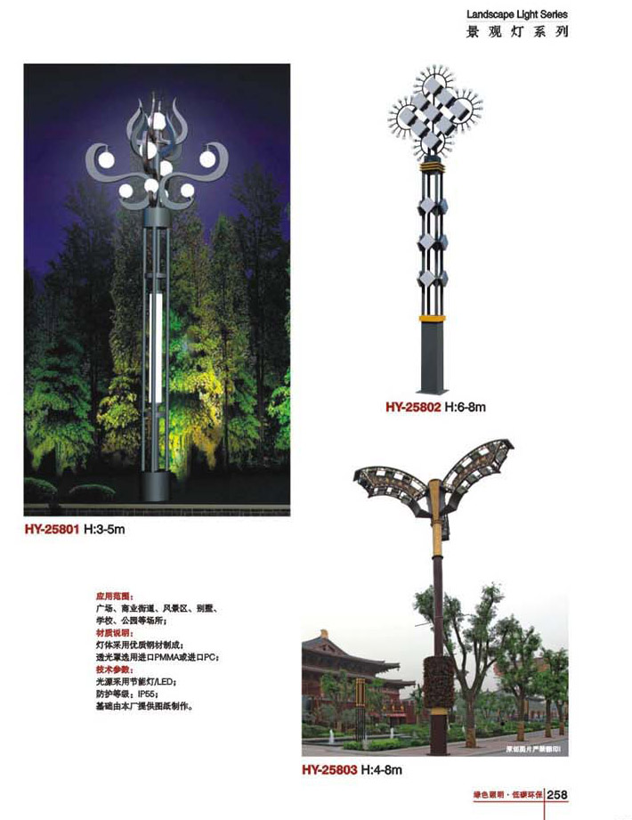 用途:景观灯适用市政工程、园林亮化工程和公园、开发区、别墅区、广场等户外路灯照明工程