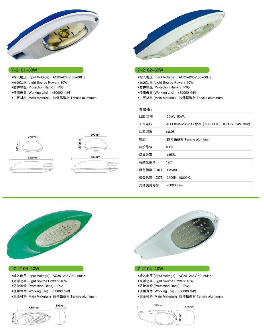 led路灯灯头技术参数: