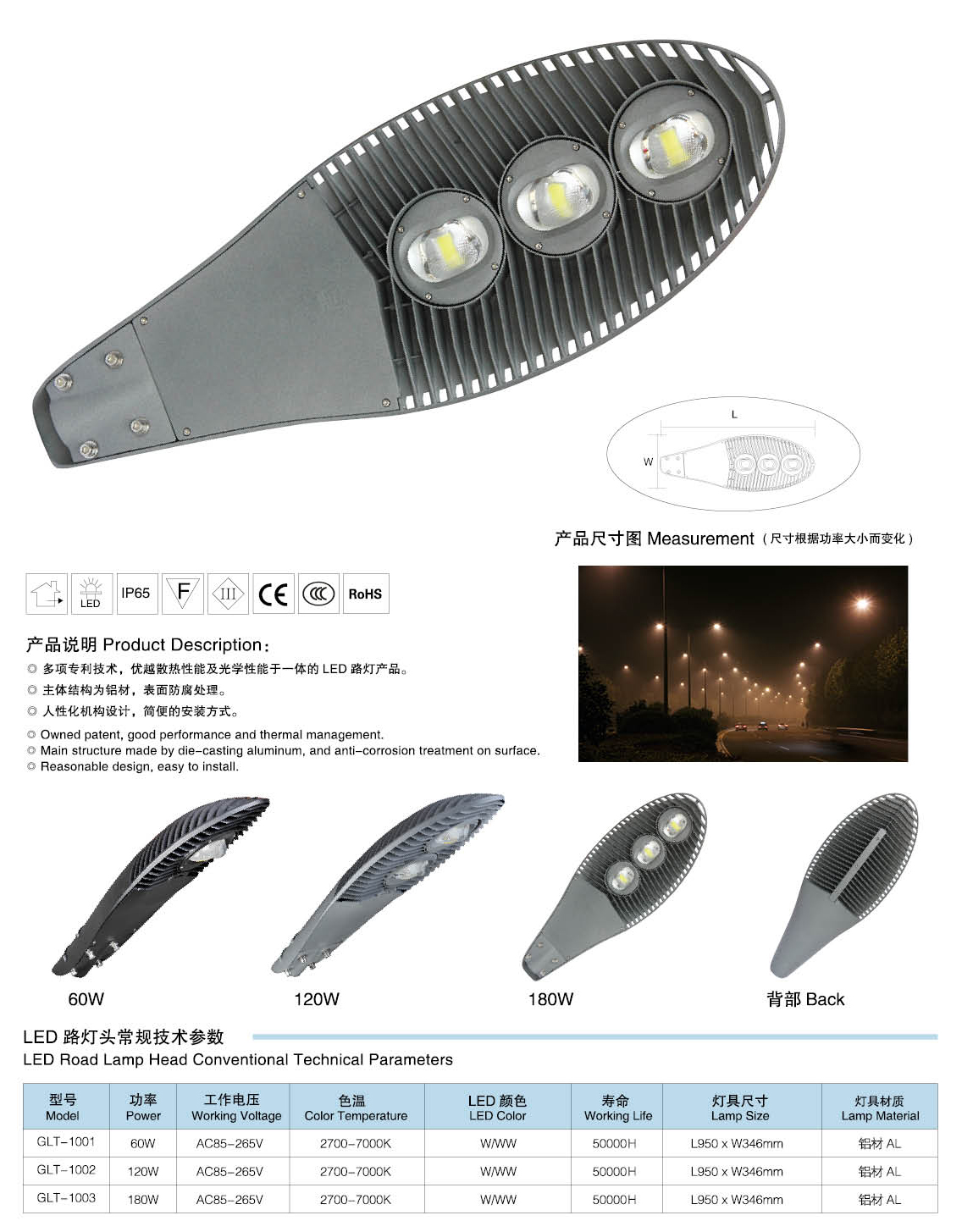 led路灯灯头技术参数: