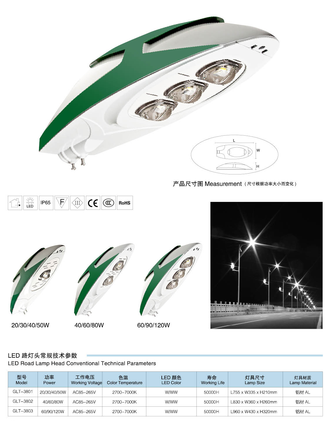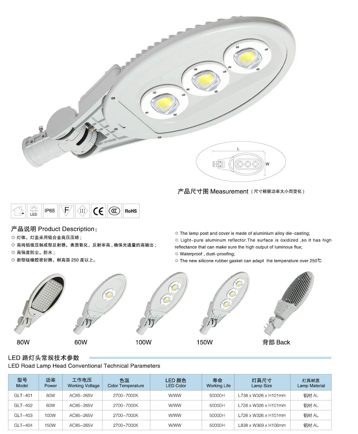 灯具参数:60W、80W、100W、150W