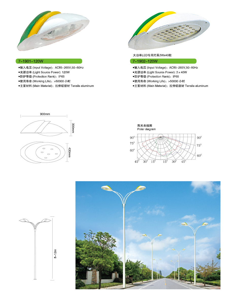 led路灯灯头光源参数: