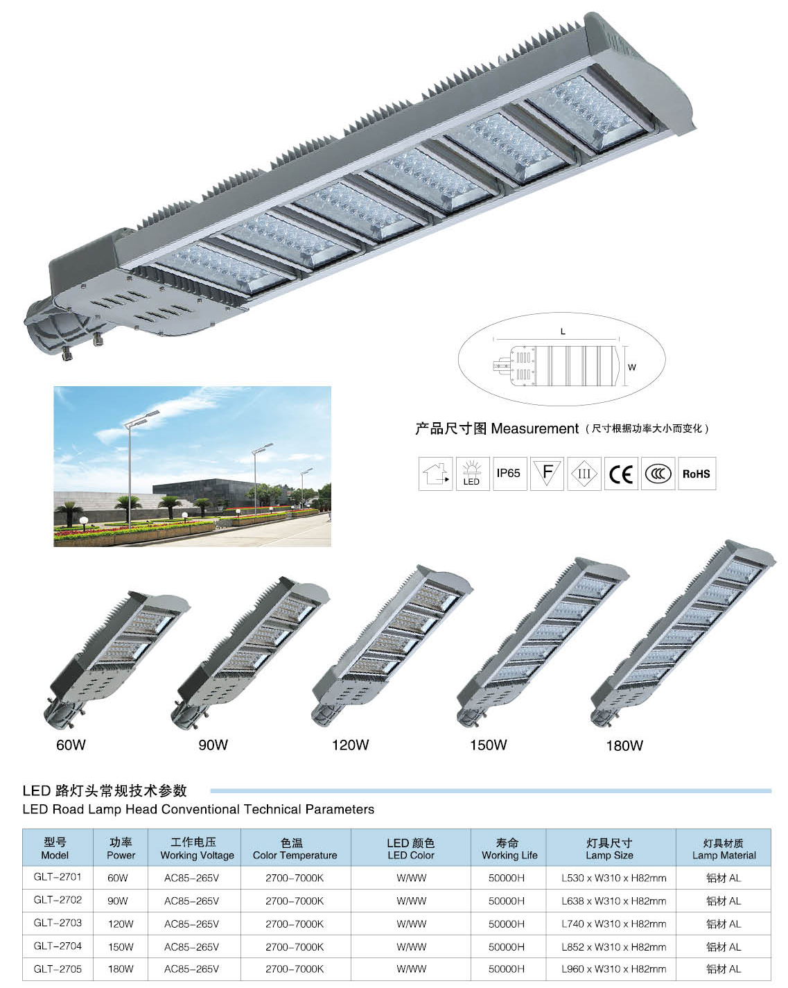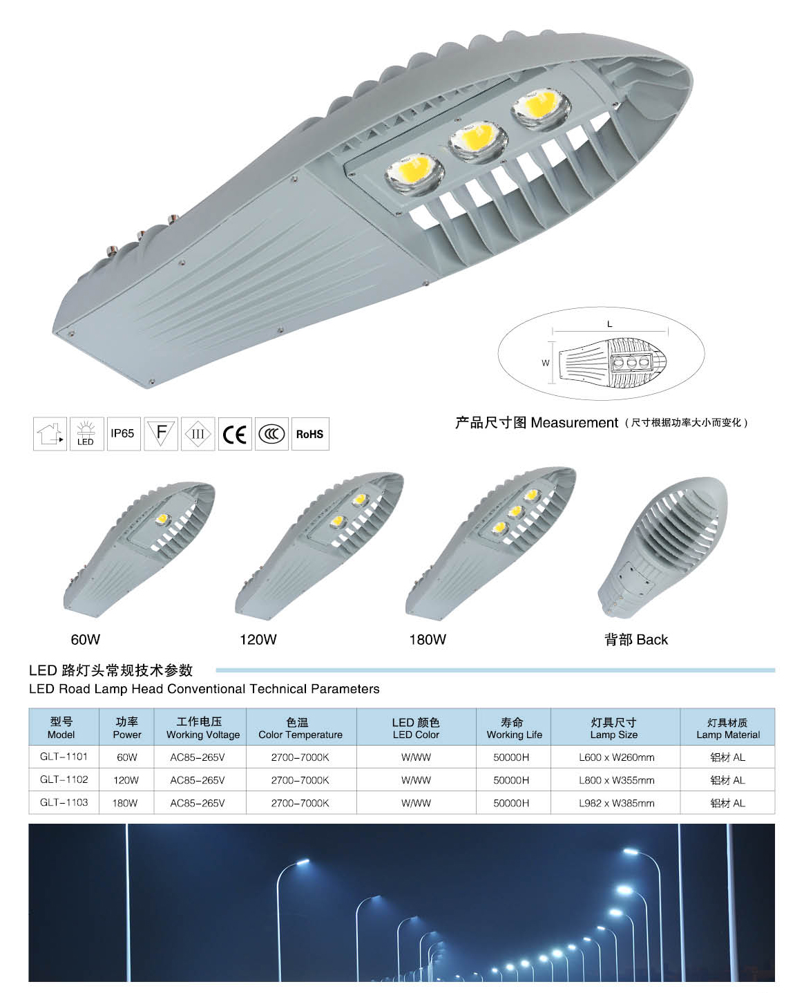 led路灯灯头技术参数: