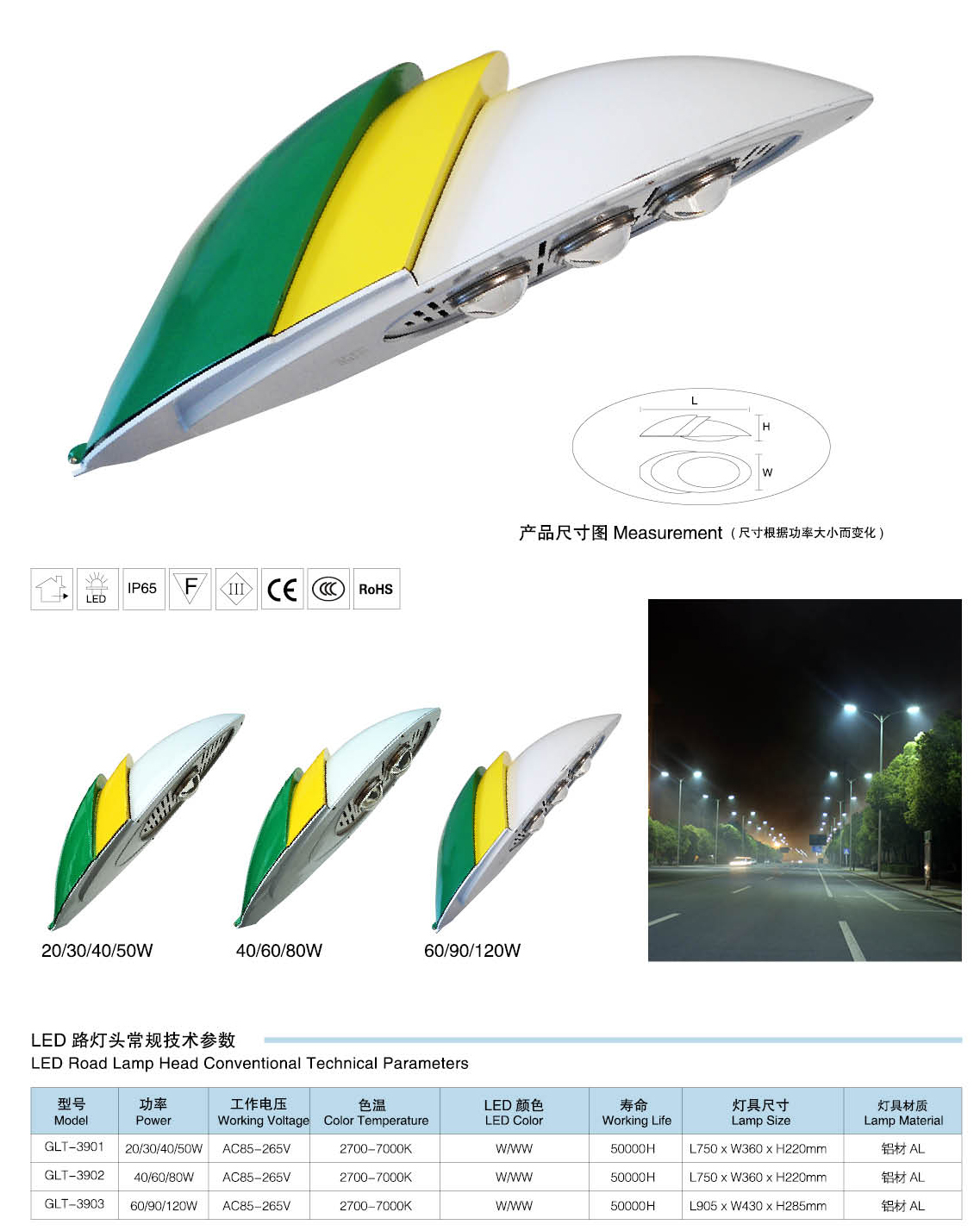 灯具参数:20W、30W、40W、50W、60W、80W、90W、120W