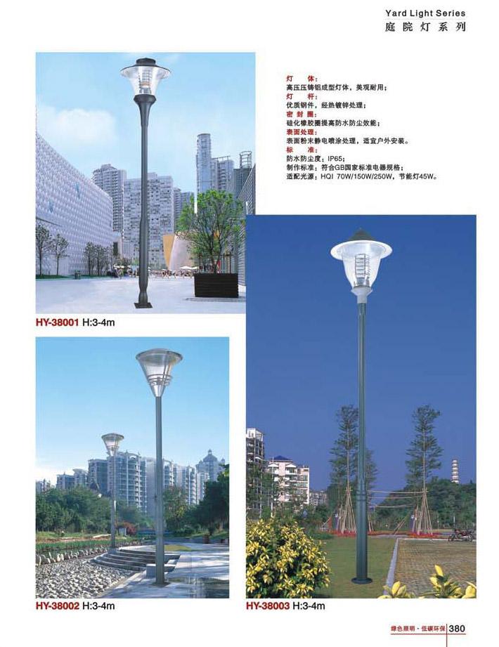 性能:庭院灯效率高,照射角度大,透雾性强,照度均匀,功率因数>0.90,寿命长达50000小时,能满足庭院分散照明要求