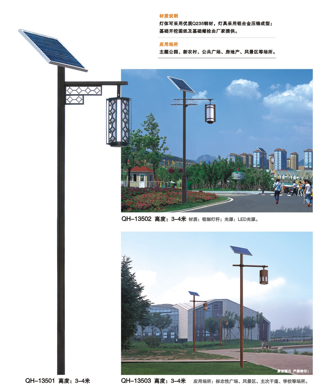 太阳能庭院灯QH-10301(简约太阳能庭院灯)适用于公园、广场、校园、市政道路等众多场所,能够起到非常不错的照明与景观功能,是照明工程优质优选产品